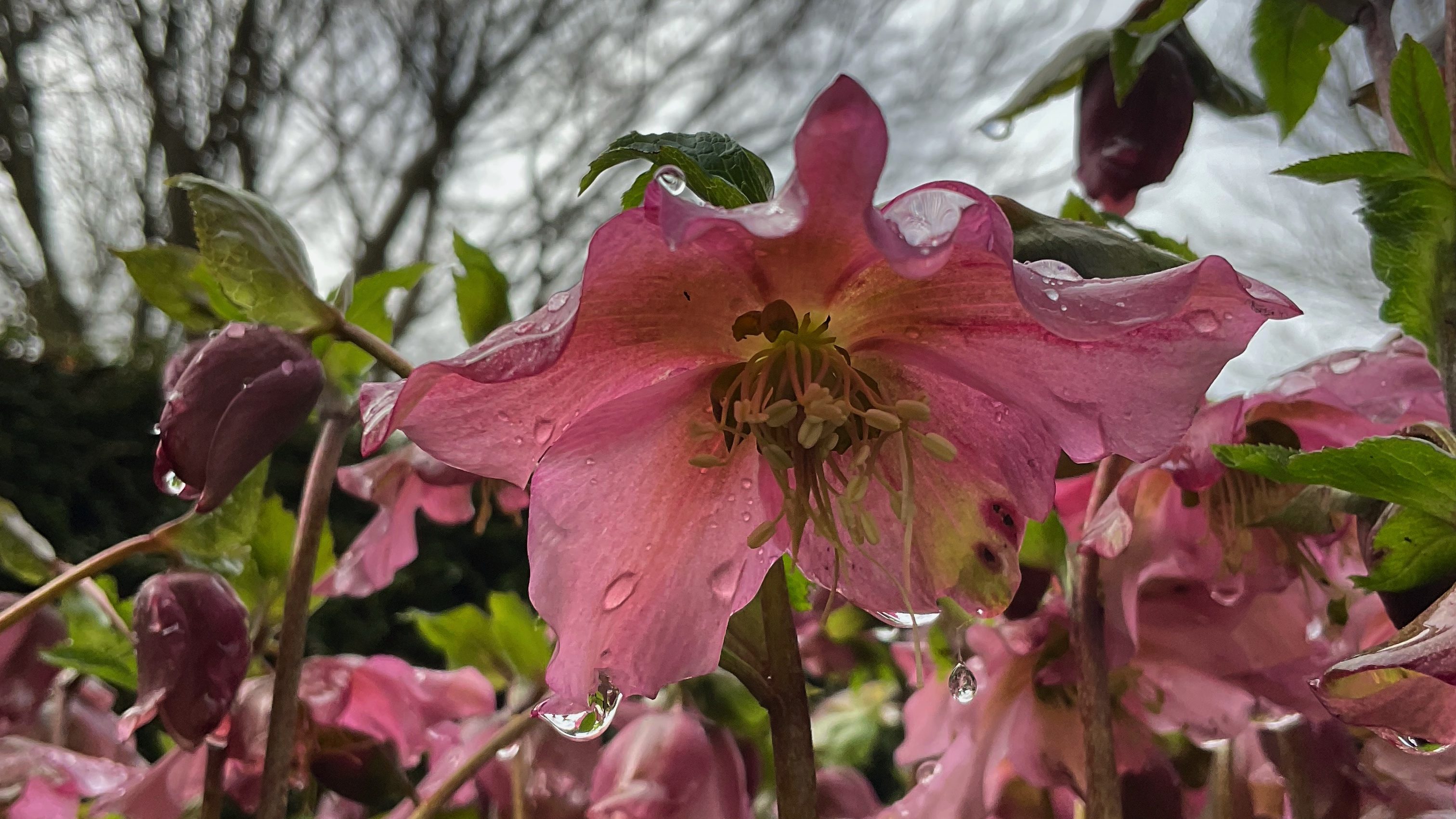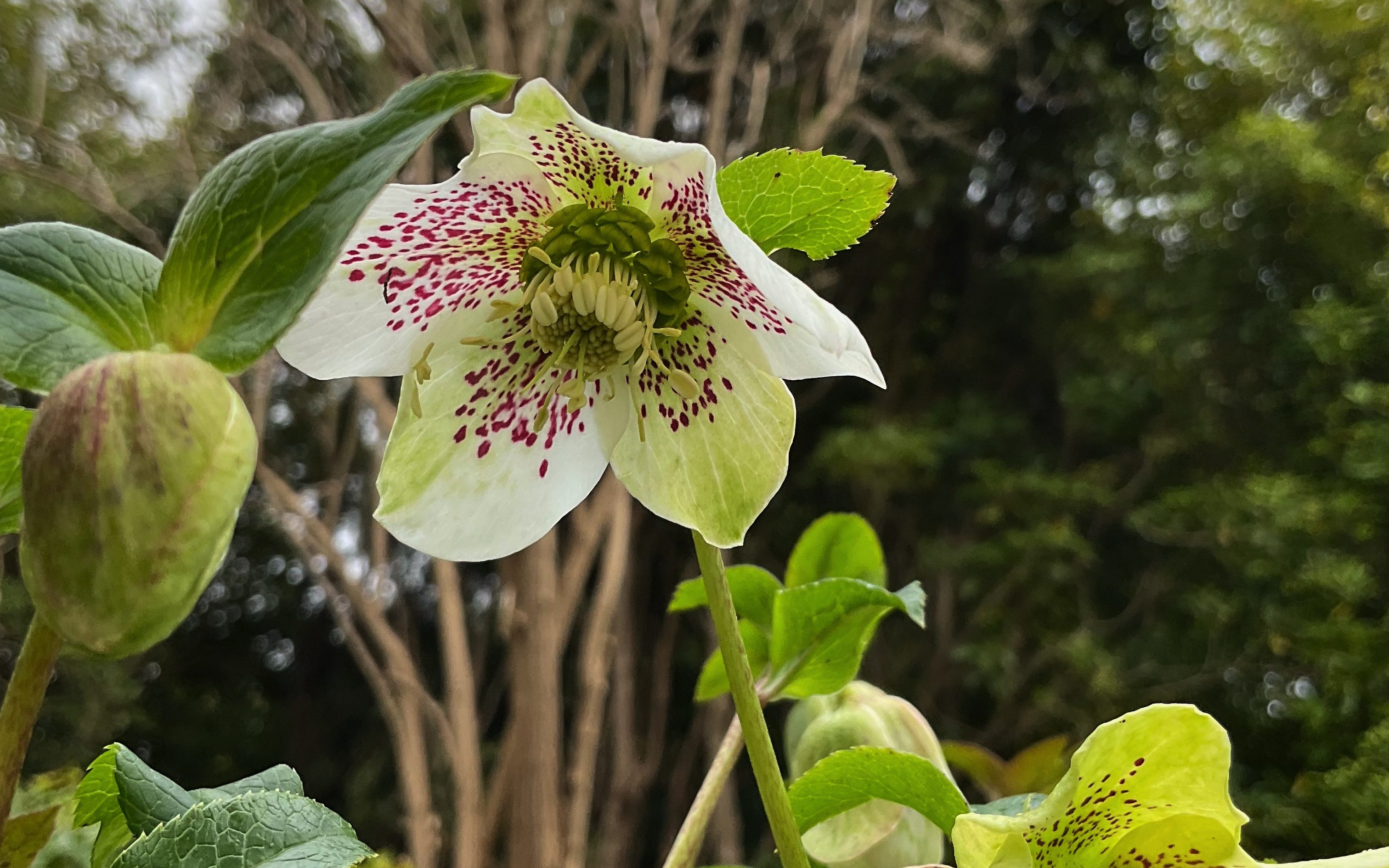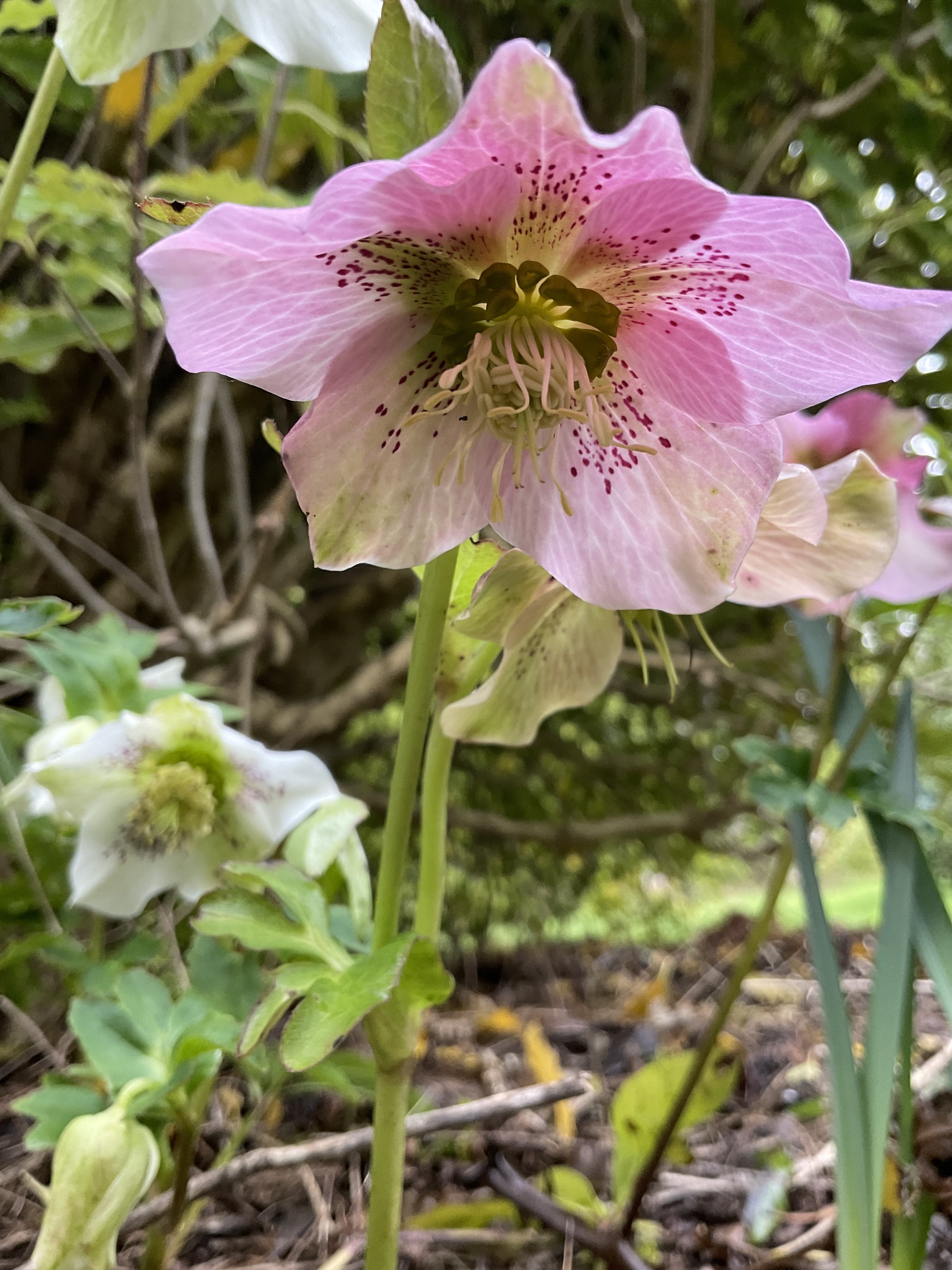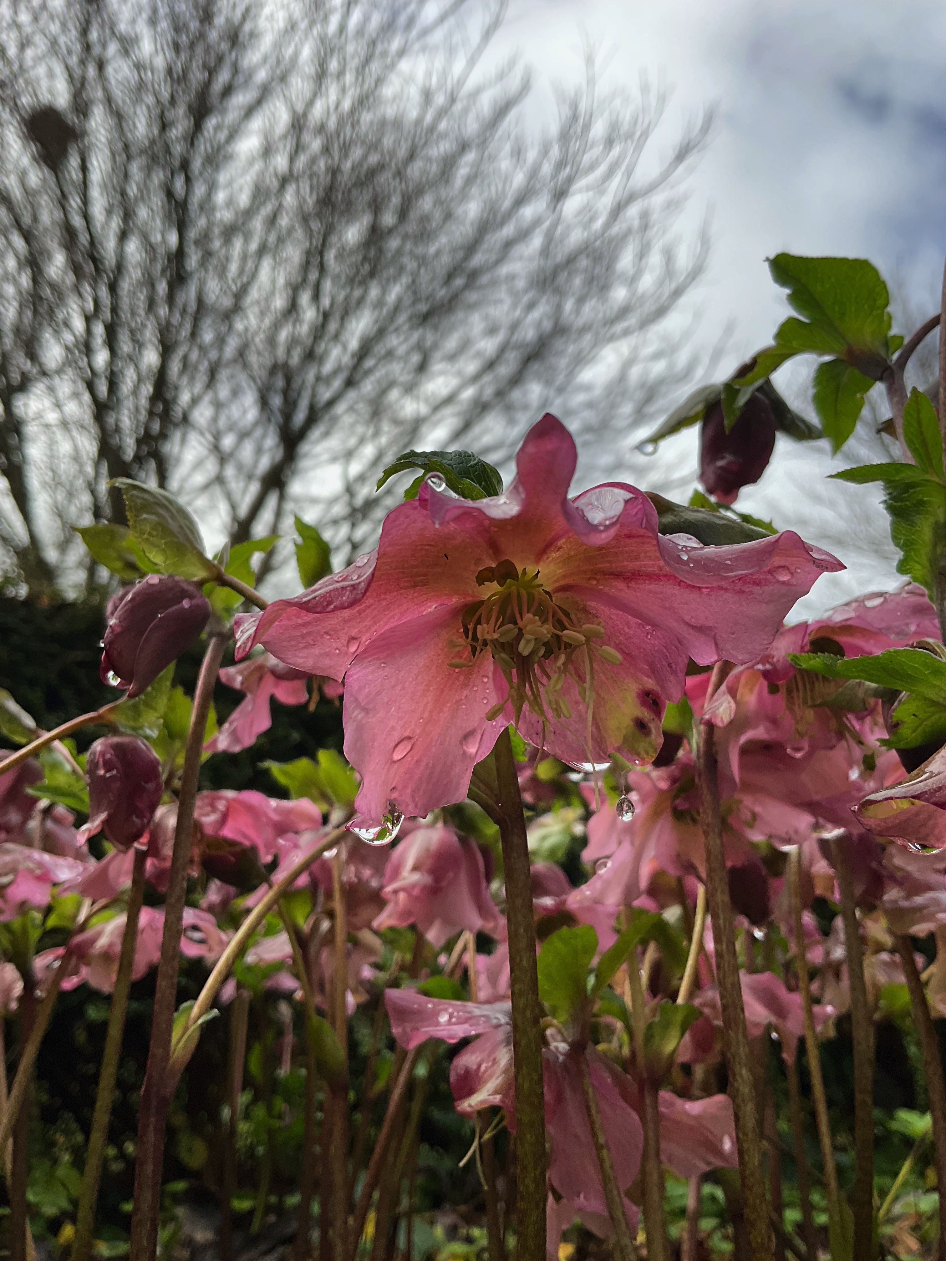 I wonder have you ever taken the time to bend down and have a look right into a hellebore flower’s face? It is worth getting down amongst the leaf mould in your happily maturing garden.